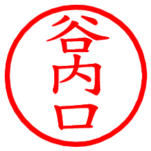 [朱肉の色]を選び、入力窓に“谷内口”と入力して[生成]ボタンを押すと、印影が更新され、リンクから電子印鑑(デジタル印影)がダウンロードできます。 電子印鑑「谷内口」の作り方文字表示が変なときや、文字バランスが悪いときは[字形切替]のチェックボックスでON/OFFを切り替え[生成]しなおしてください。 生成される画像は通常の印影「谷内口.png」と、にじみを表現した少し太めの印影「谷内口B.png」の背面透過PNG形式2種と、鮮明なPDF形式の印影「谷内口.pdf」の計3種類です。 朱肉の微妙な色の違いを7色で表現しました。デフォルト(左端)は、JISが定めた朱肉の色のマンセル値(7.5R 5/14)をRGB値(217,66,54)に変換したものになっています。 「電子透かし」にチェックを入れて[生成]ボタンを押すと、タイムスタンプを電子透かしとして埋め込んだセキュアな電子印鑑が作れます。詳細は別ページの「タイムスタンプと電子透かし」でご覧ください。 谷内口さんの日付印が作れます。「日付スタンプメーカー」は、社内向けの書類に利用されることの多い日付印(データ印)が無料で作れるWebアプリケーションです。中段に日付が入り、上段と下段は、ともに8文字まで文字が入ります。 ![]() 古代文字で落款印が作れます。「落款スタンプメーカー」で作品を引き立たせる落款印が作れます。