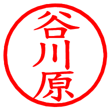 [朱肉の色]を選び、入力窓に“谷川原”と入力して[生成]ボタンを押すと、印影が更新され、リンクから電子印鑑(デジタル印影)がダウンロードできます。 電子印鑑「谷川原」の作り方文字表示が変なときや、文字バランスが悪いときは[字形切替]のチェックボックスでON/OFFを切り替え[生成]しなおしてください。 生成される画像は通常の印影「谷川原.png」と、にじみを表現した少し太めの印影「谷川原B.png」の背面透過PNG形式2種と、鮮明なPDF形式の印影「谷川原.pdf」の計3種類です。 朱肉の微妙な色の違いを7色で表現しました。デフォルト(左端)は、JISが定めた朱肉の色のマンセル値(7.5R 5/14)をRGB値(217,66,54)に変換したものになっています。 「電子透かし」にチェックを入れて[生成]ボタンを押すと、タイムスタンプを電子透かしとして埋め込んだセキュアな電子印鑑が作れます。詳細は別ページの「タイムスタンプと電子透かし」でご覧ください。 谷川原さんの日付印が作れます。「日付スタンプメーカー」は、社内向けの書類に利用されることの多い日付印(データ印)が無料で作れるWebアプリケーションです。中段に日付が入り、上段と下段は、ともに8文字まで文字が入ります。 ![]() 古代文字で落款印が作れます。「落款スタンプメーカー」で作品を引き立たせる落款印が作れます。