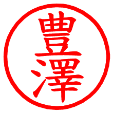 [朱肉の色]を選び、入力窓に“豊澤”と入力して[生成]ボタンを押すと、印影が更新され、リンクから電子印鑑(デジタル印影)がダウンロードできます。 電子印鑑「豊澤」の作り方文字表示が変なときや、文字バランスが悪いときは[字形切替]のチェックボックスでON/OFFを切り替え[生成]しなおしてください。 生成される画像は通常の印影「豊澤.png」と、にじみを表現した少し太めの印影「豊澤B.png」の背面透過PNG形式2種と、鮮明なPDF形式の印影「豊澤.pdf」の計3種類です。 朱肉の微妙な色の違いを7色で表現しました。デフォルト(左端)は、JISが定めた朱肉の色のマンセル値(7.5R 5/14)をRGB値(217,66,54)に変換したものになっています。 「電子透かし」にチェックを入れて[生成]ボタンを押すと、タイムスタンプを電子透かしとして埋め込んだセキュアな電子印鑑が作れます。詳細は別ページの「タイムスタンプと電子透かし」でご覧ください。 豊澤さんの日付印が作れます。「日付スタンプメーカー」は、社内向けの書類に利用されることの多い日付印(データ印)が無料で作れるWebアプリケーションです。中段に日付が入り、上段と下段は、ともに8文字まで文字が入ります。 ![]() 古代文字で落款印が作れます。「落款スタンプメーカー」で作品を引き立たせる落款印が作れます。
