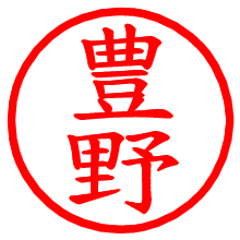 [朱肉の色]を選び、入力窓に“豊野”と入力して[生成]ボタンを押すと、印影が更新され、リンクから電子印鑑(デジタル印影)がダウンロードできます。 電子印鑑「豊野」の作り方文字表示が変なときや、文字バランスが悪いときは[字形切替]のチェックボックスでON/OFFを切り替え[生成]しなおしてください。 生成される画像は通常の印影「豊野.png」と、にじみを表現した少し太めの印影「豊野B.png」の背面透過PNG形式2種と、鮮明なPDF形式の印影「豊野.pdf」の計3種類です。 朱肉の微妙な色の違いを7色で表現しました。デフォルト(左端)は、JISが定めた朱肉の色のマンセル値(7.5R 5/14)をRGB値(217,66,54)に変換したものになっています。 「電子透かし」にチェックを入れて[生成]ボタンを押すと、タイムスタンプを電子透かしとして埋め込んだセキュアな電子印鑑が作れます。詳細は別ページの「タイムスタンプと電子透かし」でご覧ください。 豊野さんの日付印が作れます。「日付スタンプメーカー」は、社内向けの書類に利用されることの多い日付印(データ印)が無料で作れるWebアプリケーションです。中段に日付が入り、上段と下段は、ともに8文字まで文字が入ります。 ![]() 古代文字で落款印が作れます。「落款スタンプメーカー」で作品を引き立たせる落款印が作れます。
