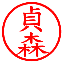 [朱肉の色]を選び、入力窓に“貞森”と入力して[生成]ボタンを押すと、印影が更新され、リンクから電子印鑑(デジタル印影)がダウンロードできます。 電子印鑑「貞森」の作り方文字表示が変なときや、文字バランスが悪いときは[字形切替]のチェックボックスでON/OFFを切り替え[生成]しなおしてください。 生成される画像は通常の印影「貞森.png」と、にじみを表現した少し太めの印影「貞森B.png」の背面透過PNG形式2種と、鮮明なPDF形式の印影「貞森.pdf」の計3種類です。 朱肉の微妙な色の違いを7色で表現しました。デフォルト(左端)は、JISが定めた朱肉の色のマンセル値(7.5R 5/14)をRGB値(217,66,54)に変換したものになっています。 「電子透かし」にチェックを入れて[生成]ボタンを押すと、タイムスタンプを電子透かしとして埋め込んだセキュアな電子印鑑が作れます。詳細は別ページの「タイムスタンプと電子透かし」でご覧ください。 貞森さんの日付印が作れます。「日付スタンプメーカー」は、社内向けの書類に利用されることの多い日付印(データ印)が無料で作れるWebアプリケーションです。中段に日付が入り、上段と下段は、ともに8文字まで文字が入ります。 ![]() 古代文字で落款印が作れます。「落款スタンプメーカー」で作品を引き立たせる落款印が作れます。