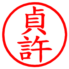 [朱肉の色]を選び、入力窓に“貞許”と入力して[生成]ボタンを押すと、印影が更新され、リンクから電子印鑑(デジタル印影)がダウンロードできます。 電子印鑑「貞許」の作り方文字表示が変なときや、文字バランスが悪いときは[字形切替]のチェックボックスでON/OFFを切り替え[生成]しなおしてください。 生成される画像は通常の印影「貞許.png」と、にじみを表現した少し太めの印影「貞許B.png」の背面透過PNG形式2種と、鮮明なPDF形式の印影「貞許.pdf」の計3種類です。 朱肉の微妙な色の違いを7色で表現しました。デフォルト(左端)は、JISが定めた朱肉の色のマンセル値(7.5R 5/14)をRGB値(217,66,54)に変換したものになっています。 「電子透かし」にチェックを入れて[生成]ボタンを押すと、タイムスタンプを電子透かしとして埋め込んだセキュアな電子印鑑が作れます。詳細は別ページの「タイムスタンプと電子透かし」でご覧ください。 貞許さんの日付印が作れます。「日付スタンプメーカー」は、社内向けの書類に利用されることの多い日付印(データ印)が無料で作れるWebアプリケーションです。中段に日付が入り、上段と下段は、ともに8文字まで文字が入ります。 ![]() 古代文字で落款印が作れます。「落款スタンプメーカー」で作品を引き立たせる落款印が作れます。
