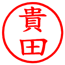 [朱肉の色]を選び、入力窓に“貴田”と入力して[生成]ボタンを押すと、印影が更新され、リンクから電子印鑑(デジタル印影)がダウンロードできます。 電子印鑑「貴田」の作り方文字表示が変なときや、文字バランスが悪いときは[字形切替]のチェックボックスでON/OFFを切り替え[生成]しなおしてください。 生成される画像は通常の印影「貴田.png」と、にじみを表現した少し太めの印影「貴田B.png」の背面透過PNG形式2種と、鮮明なPDF形式の印影「貴田.pdf」の計3種類です。 朱肉の微妙な色の違いを7色で表現しました。デフォルト(左端)は、JISが定めた朱肉の色のマンセル値(7.5R 5/14)をRGB値(217,66,54)に変換したものになっています。 「電子透かし」にチェックを入れて[生成]ボタンを押すと、タイムスタンプを透かしとして埋め込んだセキュアな電子印鑑が作れます。詳細は別ページの「電子透かしとタイムスタンプ」でご覧ください。 貴田さんの日付印が作れます。「日付スタンプメーカー」は、社内向けの書類に利用されることの多い日付印(データ印)が無料で作れるWebアプリケーションです。中段に日付が入り、上段と下段は、ともに8文字まで文字が入ります。 ![]() 古代文字で落款印が作れます。「落款スタンプメーカー」で作品を引き立たせる落款印が作れます。
