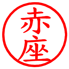[朱肉の色]を選び、入力窓に“赤座”と入力して[生成]ボタンを押すと、印影が更新され、リンクから電子印鑑(デジタル印影)がダウンロードできます。 電子印鑑「赤座」の作り方文字表示が変なときや、文字バランスが悪いときは[字形切替]のチェックボックスでON/OFFを切り替え[生成]しなおしてください。 生成される画像は通常の印影「赤座.png」と、にじみを表現した少し太めの印影「赤座B.png」の背面透過PNG形式2種と、鮮明なPDF形式の印影「赤座.pdf」の計3種類です。 朱肉の微妙な色の違いを7色で表現しました。デフォルト(左端)は、JISが定めた朱肉の色のマンセル値(7.5R 5/14)をRGB値(217,66,54)に変換したものになっています。 「電子透かし」にチェックを入れて[生成]ボタンを押すと、タイムスタンプを電子透かしとして埋め込んだセキュアな電子印鑑が作れます。詳細は別ページの「タイムスタンプと電子透かし」でご覧ください。 赤座さんの日付印が作れます。「日付スタンプメーカー」は、社内向けの書類に利用されることの多い日付印(データ印)が無料で作れるWebアプリケーションです。中段に日付が入り、上段と下段は、ともに8文字まで文字が入ります。 ![]() 古代文字で落款印が作れます。「落款スタンプメーカー」で作品を引き立たせる落款印が作れます。