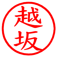 [朱肉の色]を選び、入力窓に“越坂”と入力して[生成]ボタンを押すと、印影が更新され、リンクから電子印鑑(デジタル印影)がダウンロードできます。 電子印鑑「越坂」の作り方文字表示が変なときや、文字バランスが悪いときは[字形切替]のチェックボックスでON/OFFを切り替え[生成]しなおしてください。 生成される画像は通常の印影「越坂.png」と、にじみを表現した少し太めの印影「越坂B.png」の背面透過PNG形式2種と、鮮明なPDF形式の印影「越坂.pdf」の計3種類です。 朱肉の微妙な色の違いを7色で表現しました。デフォルト(左端)は、JISが定めた朱肉の色のマンセル値(7.5R 5/14)をRGB値(217,66,54)に変換したものになっています。 「電子透かし」にチェックを入れて[生成]ボタンを押すと、タイムスタンプを電子透かしとして埋め込んだセキュアな電子印鑑が作れます。詳細は別ページの「タイムスタンプと電子透かし」でご覧ください。 越坂さんの日付印が作れます。「日付スタンプメーカー」は、社内向けの書類に利用されることの多い日付印(データ印)が無料で作れるWebアプリケーションです。中段に日付が入り、上段と下段は、ともに8文字まで文字が入ります。 ![]() 古代文字で落款印が作れます。「落款スタンプメーカー」で作品を引き立たせる落款印が作れます。