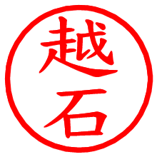 [朱肉の色]を選び、入力窓に“越石”と入力して[生成]ボタンを押すと、印影が更新され、リンクから電子印鑑(デジタル印影)がダウンロードできます。 電子印鑑「越石」の作り方文字表示が変なときや、文字バランスが悪いときは[字形切替]のチェックボックスでON/OFFを切り替え[生成]しなおしてください。 生成される画像は通常の印影「越石.png」と、にじみを表現した少し太めの印影「越石B.png」の背面透過PNG形式2種と、鮮明なPDF形式の印影「越石.pdf」の計3種類です。 朱肉の微妙な色の違いを7色で表現しました。デフォルト(左端)は、JISが定めた朱肉の色のマンセル値(7.5R 5/14)をRGB値(217,66,54)に変換したものになっています。 「電子透かし」にチェックを入れて[生成]ボタンを押すと、タイムスタンプを電子透かしとして埋め込んだセキュアな電子印鑑が作れます。詳細は別ページの「タイムスタンプと電子透かし」でご覧ください。 越石さんの日付印が作れます。「日付スタンプメーカー」は、社内向けの書類に利用されることの多い日付印(データ印)が無料で作れるWebアプリケーションです。中段に日付が入り、上段と下段は、ともに8文字まで文字が入ります。 ![]() 古代文字で落款印が作れます。「落款スタンプメーカー」で作品を引き立たせる落款印が作れます。
