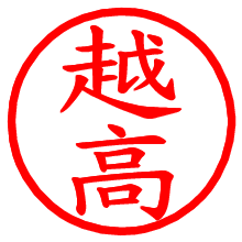 [朱肉の色]を選び、入力窓に“越高”と入力して[生成]ボタンを押すと、印影が更新され、リンクから電子印鑑(デジタル印影)がダウンロードできます。 電子印鑑「越高」の作り方文字表示が変なときや、文字バランスが悪いときは[字形切替]のチェックボックスでON/OFFを切り替え[生成]しなおしてください。 生成される画像は通常の印影「越高.png」と、にじみを表現した少し太めの印影「越高B.png」の背面透過PNG形式2種と、鮮明なPDF形式の印影「越高.pdf」の計3種類です。 朱肉の微妙な色の違いを7色で表現しました。デフォルト(左端)は、JISが定めた朱肉の色のマンセル値(7.5R 5/14)をRGB値(217,66,54)に変換したものになっています。 「電子透かし」にチェックを入れて[生成]ボタンを押すと、タイムスタンプを電子透かしとして埋め込んだセキュアな電子印鑑が作れます。詳細は別ページの「タイムスタンプと電子透かし」でご覧ください。 越高さんの日付印が作れます。「日付スタンプメーカー」は、社内向けの書類に利用されることの多い日付印(データ印)が無料で作れるWebアプリケーションです。中段に日付が入り、上段と下段は、ともに8文字まで文字が入ります。 ![]() 古代文字で落款印が作れます。「落款スタンプメーカー」で作品を引き立たせる落款印が作れます。