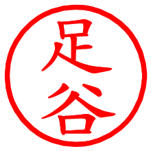 [朱肉の色]を選び、入力窓に“足谷”と入力して[生成]ボタンを押すと、印影が更新され、リンクから電子印鑑(デジタル印影)がダウンロードできます。 電子印鑑「足谷」の作り方文字表示が変なときや、文字バランスが悪いときは[字形切替]のチェックボックスでON/OFFを切り替え[生成]しなおしてください。 生成される画像は通常の印影「足谷.png」と、にじみを表現した少し太めの印影「足谷B.png」の背面透過PNG形式2種と、鮮明なPDF形式の印影「足谷.pdf」の計3種類です。 朱肉の微妙な色の違いを7色で表現しました。デフォルト(左端)は、JISが定めた朱肉の色のマンセル値(7.5R 5/14)をRGB値(217,66,54)に変換したものになっています。 「電子透かし」にチェックを入れて[生成]ボタンを押すと、タイムスタンプを電子透かしとして埋め込んだセキュアな電子印鑑が作れます。詳細は別ページの「タイムスタンプと電子透かし」でご覧ください。 足谷さんの日付印が作れます。「日付スタンプメーカー」は、社内向けの書類に利用されることの多い日付印(データ印)が無料で作れるWebアプリケーションです。中段に日付が入り、上段と下段は、ともに8文字まで文字が入ります。 ![]() 古代文字で落款印が作れます。「落款スタンプメーカー」で作品を引き立たせる落款印が作れます。