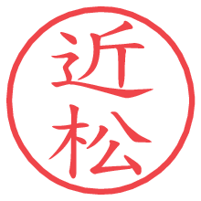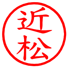 [朱肉の色]を選び、入力窓に“近松”と入力して[生成]ボタンを押すと、印影が更新され、リンクから電子印鑑(デジタル印影)がダウンロードできます。 電子印鑑「近松」の作り方文字表示が変なときや、文字バランスが悪いときは[字形切替]のチェックボックスでON/OFFを切り替え[生成]しなおしてください。 生成される画像は通常の印影「近松.png」と、にじみを表現した少し太めの印影「近松B.png」の背面透過PNG形式2種と、鮮明なPDF形式の印影「近松.pdf」の計3種類です。 朱肉の微妙な色の違いを7色で表現しました。デフォルト(左端)は、JISが定めた朱肉の色のマンセル値(7.5R 5/14)をRGB値(217,66,54)に変換したものになっています。 「電子透かし」にチェックを入れて[生成]ボタンを押すと、タイムスタンプを電子透かしとして埋め込んだセキュアな電子印鑑が作れます。詳細は別ページの「タイムスタンプと電子透かし」でご覧ください。 近松さんの日付印が作れます。「日付スタンプメーカー」は、社内向けの書類に利用されることの多い日付印(データ印)が無料で作れるWebアプリケーションです。中段に日付が入り、上段と下段は、ともに8文字まで文字が入ります。 ![]() 古代文字で落款印が作れます。「落款スタンプメーカー」で作品を引き立たせる落款印が作れます。