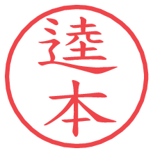[朱肉の色]を選び、入力窓に“逵本”と入力して[生成]ボタンを押すと、印影が更新され、リンクから電子印鑑(デジタル印影)がダウンロードできます。 電子印鑑「逵本」の作り方文字表示が変なときや、文字バランスが悪いときは[字形切替]のチェックボックスでON/OFFを切り替え[生成]しなおしてください。 生成される画像は通常の印影「逵本.png」と、にじみを表現した少し太めの印影「逵本B.png」の背面透過PNG形式2種と、鮮明なPDF形式の印影「逵本.pdf」の計3種類です。 朱肉の微妙な色の違いを7色で表現しました。デフォルト(左端)は、JISが定めた朱肉の色のマンセル値(7.5R 5/14)をRGB値(217,66,54)に変換したものになっています。 「電子透かし」にチェックを入れて[生成]ボタンを押すと、タイムスタンプを電子透かしとして埋め込んだセキュアな電子印鑑が作れます。詳細は別ページの「タイムスタンプと電子透かし」でご覧ください。 逵本さんの日付印が作れます。「日付スタンプメーカー」は、社内向けの書類に利用されることの多い日付印(データ印)が無料で作れるWebアプリケーションです。中段に日付が入り、上段と下段は、ともに8文字まで文字が入ります。 ![]() 古代文字で落款印が作れます。「落款スタンプメーカー」で作品を引き立たせる落款印が作れます。