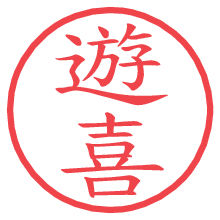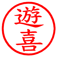 [朱肉の色]を選び、入力窓に“遊喜”と入力して[生成]ボタンを押すと、印影が更新され、リンクから電子印鑑(デジタル印影)がダウンロードできます。 電子印鑑「遊喜」の作り方文字表示が変なときや、文字バランスが悪いときは[字形切替]のチェックボックスでON/OFFを切り替え[生成]しなおしてください。 生成される画像は通常の印影「遊喜.png」と、にじみを表現した少し太めの印影「遊喜B.png」の背面透過PNG形式2種と、鮮明なPDF形式の印影「遊喜.pdf」の計3種類です。 朱肉の微妙な色の違いを7色で表現しました。デフォルト(左端)は、JISが定めた朱肉の色のマンセル値(7.5R 5/14)をRGB値(217,66,54)に変換したものになっています。 「電子透かし」にチェックを入れて[生成]ボタンを押すと、タイムスタンプを電子透かしとして埋め込んだセキュアな電子印鑑が作れます。詳細は別ページの「タイムスタンプと電子透かし」でご覧ください。 遊喜さんの日付印が作れます。「日付スタンプメーカー」は、社内向けの書類に利用されることの多い日付印(データ印)が無料で作れるWebアプリケーションです。中段に日付が入り、上段と下段は、ともに8文字まで文字が入ります。 ![]() 古代文字で落款印が作れます。「落款スタンプメーカー」で作品を引き立たせる落款印が作れます。