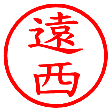 [朱肉の色]を選び、入力窓に“遠西”と入力して[生成]ボタンを押すと、印影が更新され、リンクから電子印鑑(デジタル印影)がダウンロードできます。 電子印鑑「遠西」の作り方文字表示が変なときや、文字バランスが悪いときは[字形切替]のチェックボックスでON/OFFを切り替え[生成]しなおしてください。 生成される画像は通常の印影「遠西.png」と、にじみを表現した少し太めの印影「遠西B.png」の背面透過PNG形式2種と、鮮明なPDF形式の印影「遠西.pdf」の計3種類です。 朱肉の微妙な色の違いを7色で表現しました。デフォルト(左端)は、JISが定めた朱肉の色のマンセル値(7.5R 5/14)をRGB値(217,66,54)に変換したものになっています。 「電子透かし」にチェックを入れて[生成]ボタンを押すと、タイムスタンプを電子透かしとして埋め込んだセキュアな電子印鑑が作れます。詳細は別ページの「タイムスタンプと電子透かし」でご覧ください。 遠西さんの日付印が作れます。「日付スタンプメーカー」は、社内向けの書類に利用されることの多い日付印(データ印)が無料で作れるWebアプリケーションです。中段に日付が入り、上段と下段は、ともに8文字まで文字が入ります。 ![]() 古代文字で落款印が作れます。「落款スタンプメーカー」で作品を引き立たせる落款印が作れます。