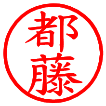[朱肉の色]を選び、入力窓に“都藤”と入力して[生成]ボタンを押すと、印影が更新され、リンクから電子印鑑(デジタル印影)がダウンロードできます。 電子印鑑「都藤」の作り方文字表示が変なときや、文字バランスが悪いときは[字形切替]のチェックボックスでON/OFFを切り替え[生成]しなおしてください。 生成される画像は通常の印影「都藤.png」と、にじみを表現した少し太めの印影「都藤B.png」の背面透過PNG形式2種と、鮮明なPDF形式の印影「都藤.pdf」の計3種類です。 朱肉の微妙な色の違いを7色で表現しました。デフォルト(左端)は、JISが定めた朱肉の色のマンセル値(7.5R 5/14)をRGB値(217,66,54)に変換したものになっています。 「電子透かし」にチェックを入れて[生成]ボタンを押すと、タイムスタンプを電子透かしとして埋め込んだセキュアな電子印鑑が作れます。詳細は別ページの「タイムスタンプと電子透かし」でご覧ください。 都藤さんの日付印が作れます。「日付スタンプメーカー」は、社内向けの書類に利用されることの多い日付印(データ印)が無料で作れるWebアプリケーションです。中段に日付が入り、上段と下段は、ともに8文字まで文字が入ります。 ![]() 古代文字で落款印が作れます。「落款スタンプメーカー」で作品を引き立たせる落款印が作れます。