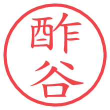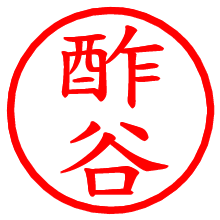 [朱肉の色]を選び、入力窓に“酢谷”と入力して[生成]ボタンを押すと、印影が更新され、リンクから電子印鑑(デジタル印影)がダウンロードできます。 電子印鑑「酢谷」の作り方文字表示が変なときや、文字バランスが悪いときは[字形切替]のチェックボックスでON/OFFを切り替え[生成]しなおしてください。 生成される画像は通常の印影「酢谷.png」と、にじみを表現した少し太めの印影「酢谷B.png」の背面透過PNG形式2種と、鮮明なPDF形式の印影「酢谷.pdf」の計3種類です。 朱肉の微妙な色の違いを7色で表現しました。デフォルト(左端)は、JISが定めた朱肉の色のマンセル値(7.5R 5/14)をRGB値(217,66,54)に変換したものになっています。 「電子透かし」にチェックを入れて[生成]ボタンを押すと、タイムスタンプを電子透かしとして埋め込んだセキュアな電子印鑑が作れます。詳細は別ページの「タイムスタンプと電子透かし」でご覧ください。 酢谷さんの日付印が作れます。「日付スタンプメーカー」は、社内向けの書類に利用されることの多い日付印(データ印)が無料で作れるWebアプリケーションです。中段に日付が入り、上段と下段は、ともに8文字まで文字が入ります。 ![]() 古代文字で落款印が作れます。「落款スタンプメーカー」で作品を引き立たせる落款印が作れます。