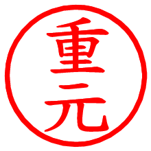 [朱肉の色]を選び、入力窓に“重元”と入力して[生成]ボタンを押すと、印影が更新され、リンクから電子印鑑(デジタル印影)がダウンロードできます。 電子印鑑「重元」の作り方文字表示が変なときや、文字バランスが悪いときは[字形切替]のチェックボックスでON/OFFを切り替え[生成]しなおしてください。 生成される画像は通常の印影「重元.png」と、にじみを表現した少し太めの印影「重元B.png」の背面透過PNG形式2種と、鮮明なPDF形式の印影「重元.pdf」の計3種類です。 朱肉の微妙な色の違いを7色で表現しました。デフォルト(左端)は、JISが定めた朱肉の色のマンセル値(7.5R 5/14)をRGB値(217,66,54)に変換したものになっています。 「電子透かし」にチェックを入れて[生成]ボタンを押すと、タイムスタンプを電子透かしとして埋め込んだセキュアな電子印鑑が作れます。詳細は別ページの「タイムスタンプと電子透かし」でご覧ください。 重元さんの日付印が作れます。「日付スタンプメーカー」は、社内向けの書類に利用されることの多い日付印(データ印)が無料で作れるWebアプリケーションです。中段に日付が入り、上段と下段は、ともに8文字まで文字が入ります。 ![]() 古代文字で落款印が作れます。「落款スタンプメーカー」で作品を引き立たせる落款印が作れます。