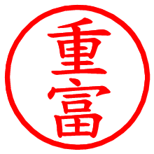 [朱肉の色]を選び、入力窓に“重富”と入力して[生成]ボタンを押すと、印影が更新され、リンクから電子印鑑(デジタル印影)がダウンロードできます。 電子印鑑「重富」の作り方文字表示が変なときや、文字バランスが悪いときは[字形切替]のチェックボックスでON/OFFを切り替え[生成]しなおしてください。 生成される画像は通常の印影「重富.png」と、にじみを表現した少し太めの印影「重富B.png」の背面透過PNG形式2種と、鮮明なPDF形式の印影「重富.pdf」の計3種類です。 朱肉の微妙な色の違いを7色で表現しました。デフォルト(左端)は、JISが定めた朱肉の色のマンセル値(7.5R 5/14)をRGB値(217,66,54)に変換したものになっています。 「電子透かし」にチェックを入れて[生成]ボタンを押すと、タイムスタンプを透かしとして埋め込んだセキュアな電子印鑑が作れます。詳細は別ページの「電子透かしとタイムスタンプ」でご覧ください。 重富さんの日付印が作れます。「日付スタンプメーカー」は、社内向けの書類に利用されることの多い日付印(データ印)が無料で作れるWebアプリケーションです。中段に日付が入り、上段と下段は、ともに8文字まで文字が入ります。 ![]() 古代文字で落款印が作れます。「落款スタンプメーカー」で作品を引き立たせる落款印が作れます。