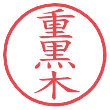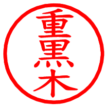 [朱肉の色]を選び、入力窓に“重黒木”と入力して[生成]ボタンを押すと、印影が更新され、リンクから電子印鑑(デジタル印影)がダウンロードできます。 電子印鑑「重黒木」の作り方文字表示が変なときや、文字バランスが悪いときは[字形切替]のチェックボックスでON/OFFを切り替え[生成]しなおしてください。 生成される画像は通常の印影「重黒木.png」と、にじみを表現した少し太めの印影「重黒木B.png」の背面透過PNG形式2種と、鮮明なPDF形式の印影「重黒木.pdf」の計3種類です。 朱肉の微妙な色の違いを7色で表現しました。デフォルト(左端)は、JISが定めた朱肉の色のマンセル値(7.5R 5/14)をRGB値(217,66,54)に変換したものになっています。 「電子透かし」にチェックを入れて[生成]ボタンを押すと、タイムスタンプを電子透かしとして埋め込んだセキュアな電子印鑑が作れます。詳細は別ページの「タイムスタンプと電子透かし」でご覧ください。 重黒木さんの日付印が作れます。「日付スタンプメーカー」は、社内向けの書類に利用されることの多い日付印(データ印)が無料で作れるWebアプリケーションです。中段に日付が入り、上段と下段は、ともに8文字まで文字が入ります。 ![]() 古代文字で落款印が作れます。「落款スタンプメーカー」で作品を引き立たせる落款印が作れます。