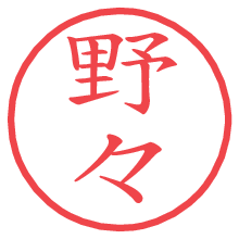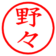 [朱肉の色]を選び、入力窓に“野々”と入力して[生成]ボタンを押すと、印影が更新され、リンクから電子印鑑(デジタル印影)がダウンロードできます。 電子印鑑「野々」の作り方文字表示が変なときや、文字バランスが悪いときは[字形切替]のチェックボックスでON/OFFを切り替え[生成]しなおしてください。 生成される画像は通常の印影「野々.png」と、にじみを表現した少し太めの印影「野々B.png」の背面透過PNG形式2種と、鮮明なPDF形式の印影「野々.pdf」の計3種類です。 朱肉の微妙な色の違いを7色で表現しました。デフォルト(左端)は、JISが定めた朱肉の色のマンセル値(7.5R 5/14)をRGB値(217,66,54)に変換したものになっています。 「電子透かし」にチェックを入れて[生成]ボタンを押すと、タイムスタンプを電子透かしとして埋め込んだセキュアな電子印鑑が作れます。詳細は別ページの「タイムスタンプと電子透かし」でご覧ください。 野々さんの日付印が作れます。「日付スタンプメーカー」は、社内向けの書類に利用されることの多い日付印(データ印)が無料で作れるWebアプリケーションです。中段に日付が入り、上段と下段は、ともに8文字まで文字が入ります。 ![]() 古代文字で落款印が作れます。「落款スタンプメーカー」で作品を引き立たせる落款印が作れます。