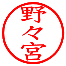 [朱肉の色]を選び、入力窓に“野々宮”と入力して[生成]ボタンを押すと、印影が更新され、リンクから電子印鑑(デジタル印影)がダウンロードできます。 電子印鑑「野々宮」の作り方文字表示が変なときや、文字バランスが悪いときは[字形切替]のチェックボックスでON/OFFを切り替え[生成]しなおしてください。 生成される画像は通常の印影「野々宮.png」と、にじみを表現した少し太めの印影「野々宮B.png」の背面透過PNG形式2種と、鮮明なPDF形式の印影「野々宮.pdf」の計3種類です。 朱肉の微妙な色の違いを7色で表現しました。デフォルト(左端)は、JISが定めた朱肉の色のマンセル値(7.5R 5/14)をRGB値(217,66,54)に変換したものになっています。 「電子透かし」にチェックを入れて[生成]ボタンを押すと、タイムスタンプを電子透かしとして埋め込んだセキュアな電子印鑑が作れます。詳細は別ページの「タイムスタンプと電子透かし」でご覧ください。 野々宮さんの日付印が作れます。「日付スタンプメーカー」は、社内向けの書類に利用されることの多い日付印(データ印)が無料で作れるWebアプリケーションです。中段に日付が入り、上段と下段は、ともに8文字まで文字が入ります。 ![]() 古代文字で落款印が作れます。「落款スタンプメーカー」で作品を引き立たせる落款印が作れます。