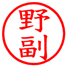 [朱肉の色]を選び、入力窓に“野副”と入力して[生成]ボタンを押すと、印影が更新され、リンクから電子印鑑(デジタル印影)がダウンロードできます。 電子印鑑「野副」の作り方文字表示が変なときや、文字バランスが悪いときは[字形切替]のチェックボックスでON/OFFを切り替え[生成]しなおしてください。 生成される画像は通常の印影「野副.png」と、にじみを表現した少し太めの印影「野副B.png」の背面透過PNG形式2種と、鮮明なPDF形式の印影「野副.pdf」の計3種類です。 朱肉の微妙な色の違いを7色で表現しました。デフォルト(左端)は、JISが定めた朱肉の色のマンセル値(7.5R 5/14)をRGB値(217,66,54)に変換したものになっています。 「電子透かし」にチェックを入れて[生成]ボタンを押すと、タイムスタンプを電子透かしとして埋め込んだセキュアな電子印鑑が作れます。詳細は別ページの「タイムスタンプと電子透かし」でご覧ください。 野副さんの日付印が作れます。「日付スタンプメーカー」は、社内向けの書類に利用されることの多い日付印(データ印)が無料で作れるWebアプリケーションです。中段に日付が入り、上段と下段は、ともに8文字まで文字が入ります。 ![]() 古代文字で落款印が作れます。「落款スタンプメーカー」で作品を引き立たせる落款印が作れます。