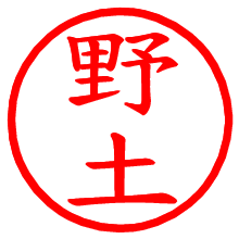 [朱肉の色]を選び、入力窓に“野土”と入力して[生成]ボタンを押すと、印影が更新され、リンクから電子印鑑(デジタル印影)がダウンロードできます。 電子印鑑「野土」の作り方文字表示が変なときや、文字バランスが悪いときは[字形切替]のチェックボックスでON/OFFを切り替え[生成]しなおしてください。 生成される画像は通常の印影「野土.png」と、にじみを表現した少し太めの印影「野土B.png」の背面透過PNG形式2種と、鮮明なPDF形式の印影「野土.pdf」の計3種類です。 朱肉の微妙な色の違いを7色で表現しました。デフォルト(左端)は、JISが定めた朱肉の色のマンセル値(7.5R 5/14)をRGB値(217,66,54)に変換したものになっています。 「電子透かし」にチェックを入れて[生成]ボタンを押すと、タイムスタンプを電子透かしとして埋め込んだセキュアな電子印鑑が作れます。詳細は別ページの「タイムスタンプと電子透かし」でご覧ください。 野土さんの日付印が作れます。「日付スタンプメーカー」は、社内向けの書類に利用されることの多い日付印(データ印)が無料で作れるWebアプリケーションです。中段に日付が入り、上段と下段は、ともに8文字まで文字が入ります。 ![]() 古代文字で落款印が作れます。「落款スタンプメーカー」で作品を引き立たせる落款印が作れます。