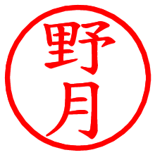 [朱肉の色]を選び、入力窓に“野月”と入力して[生成]ボタンを押すと、印影が更新され、リンクから電子印鑑(デジタル印影)がダウンロードできます。 電子印鑑「野月」の作り方文字表示が変なときや、文字バランスが悪いときは[字形切替]のチェックボックスでON/OFFを切り替え[生成]しなおしてください。 生成される画像は通常の印影「野月.png」と、にじみを表現した少し太めの印影「野月B.png」の背面透過PNG形式2種と、鮮明なPDF形式の印影「野月.pdf」の計3種類です。 朱肉の微妙な色の違いを7色で表現しました。デフォルト(左端)は、JISが定めた朱肉の色のマンセル値(7.5R 5/14)をRGB値(217,66,54)に変換したものになっています。 「電子透かし」にチェックを入れて[生成]ボタンを押すと、タイムスタンプを電子透かしとして埋め込んだセキュアな電子印鑑が作れます。詳細は別ページの「タイムスタンプと電子透かし」でご覧ください。 野月さんの日付印が作れます。「日付スタンプメーカー」は、社内向けの書類に利用されることの多い日付印(データ印)が無料で作れるWebアプリケーションです。中段に日付が入り、上段と下段は、ともに8文字まで文字が入ります。 ![]() 古代文字で落款印が作れます。「落款スタンプメーカー」で作品を引き立たせる落款印が作れます。