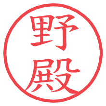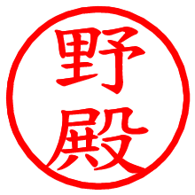 [朱肉の色]を選び、入力窓に“野殿”と入力して[生成]ボタンを押すと、印影が更新され、リンクから電子印鑑(デジタル印影)がダウンロードできます。 電子印鑑「野殿」の作り方文字表示が変なときや、文字バランスが悪いときは[字形切替]のチェックボックスでON/OFFを切り替え[生成]しなおしてください。 生成される画像は通常の印影「野殿.png」と、にじみを表現した少し太めの印影「野殿B.png」の背面透過PNG形式2種と、鮮明なPDF形式の印影「野殿.pdf」の計3種類です。 朱肉の微妙な色の違いを7色で表現しました。デフォルト(左端)は、JISが定めた朱肉の色のマンセル値(7.5R 5/14)をRGB値(217,66,54)に変換したものになっています。 「電子透かし」にチェックを入れて[生成]ボタンを押すと、タイムスタンプを電子透かしとして埋め込んだセキュアな電子印鑑が作れます。詳細は別ページの「タイムスタンプと電子透かし」でご覧ください。 野殿さんの日付印が作れます。「日付スタンプメーカー」は、社内向けの書類に利用されることの多い日付印(データ印)が無料で作れるWebアプリケーションです。中段に日付が入り、上段と下段は、ともに8文字まで文字が入ります。 ![]() 古代文字で落款印が作れます。「落款スタンプメーカー」で作品を引き立たせる落款印が作れます。