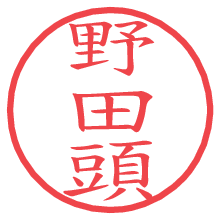 [朱肉の色]を選び、入力窓に“野田頭”と入力して[生成]ボタンを押すと、印影が更新され、リンクから電子印鑑(デジタル印影)がダウンロードできます。 電子印鑑「野田頭」の作り方文字表示が変なときや、文字バランスが悪いときは[字形切替]のチェックボックスでON/OFFを切り替え[生成]しなおしてください。 生成される画像は通常の印影「野田頭.png」と、にじみを表現した少し太めの印影「野田頭B.png」の背面透過PNG形式2種と、鮮明なPDF形式の印影「野田頭.pdf」の計3種類です。 朱肉の微妙な色の違いを7色で表現しました。デフォルト(左端)は、JISが定めた朱肉の色のマンセル値(7.5R 5/14)をRGB値(217,66,54)に変換したものになっています。 「電子透かし」にチェックを入れて[生成]ボタンを押すと、タイムスタンプを電子透かしとして埋め込んだセキュアな電子印鑑が作れます。詳細は別ページの「タイムスタンプと電子透かし」でご覧ください。 野田頭さんの日付印が作れます。「日付スタンプメーカー」は、社内向けの書類に利用されることの多い日付印(データ印)が無料で作れるWebアプリケーションです。中段に日付が入り、上段と下段は、ともに8文字まで文字が入ります。 ![]() 古代文字で落款印が作れます。「落款スタンプメーカー」で作品を引き立たせる落款印が作れます。