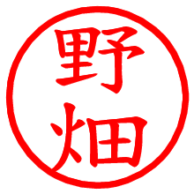 [朱肉の色]を選び、入力窓に“野畑”と入力して[生成]ボタンを押すと、印影が更新され、リンクから電子印鑑(デジタル印影)がダウンロードできます。 電子印鑑「野畑」の作り方文字表示が変なときや、文字バランスが悪いときは[字形切替]のチェックボックスでON/OFFを切り替え[生成]しなおしてください。 生成される画像は通常の印影「野畑.png」と、にじみを表現した少し太めの印影「野畑B.png」の背面透過PNG形式2種と、鮮明なPDF形式の印影「野畑.pdf」の計3種類です。 朱肉の微妙な色の違いを7色で表現しました。デフォルト(左端)は、JISが定めた朱肉の色のマンセル値(7.5R 5/14)をRGB値(217,66,54)に変換したものになっています。 「電子透かし」にチェックを入れて[生成]ボタンを押すと、タイムスタンプを透かしとして埋め込んだセキュアな電子印鑑が作れます。詳細は別ページの「電子透かしとタイムスタンプ」でご覧ください。 野畑さんの日付印が作れます。「日付スタンプメーカー」は、社内向けの書類に利用されることの多い日付印(データ印)が無料で作れるWebアプリケーションです。中段に日付が入り、上段と下段は、ともに8文字まで文字が入ります。 ![]() 古代文字で落款印が作れます。「落款スタンプメーカー」で作品を引き立たせる落款印が作れます。