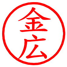 [朱肉の色]を選び、入力窓に“金広”と入力して[生成]ボタンを押すと、印影が更新され、リンクから電子印鑑(デジタル印影)がダウンロードできます。 電子印鑑「金広」の作り方文字表示が変なときや、文字バランスが悪いときは[字形切替]のチェックボックスでON/OFFを切り替え[生成]しなおしてください。 生成される画像は通常の印影「金広.png」と、にじみを表現した少し太めの印影「金広B.png」の背面透過PNG形式2種と、鮮明なPDF形式の印影「金広.pdf」の計3種類です。 朱肉の微妙な色の違いを7色で表現しました。デフォルト(左端)は、JISが定めた朱肉の色のマンセル値(7.5R 5/14)をRGB値(217,66,54)に変換したものになっています。 「電子透かし」にチェックを入れて[生成]ボタンを押すと、タイムスタンプを電子透かしとして埋め込んだセキュアな電子印鑑が作れます。詳細は別ページの「タイムスタンプと電子透かし」でご覧ください。 金広さんの日付印が作れます。「日付スタンプメーカー」は、社内向けの書類に利用されることの多い日付印(データ印)が無料で作れるWebアプリケーションです。中段に日付が入り、上段と下段は、ともに8文字まで文字が入ります。 ![]() 古代文字で落款印が作れます。「落款スタンプメーカー」で作品を引き立たせる落款印が作れます。