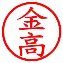 [朱肉の色]を選び、入力窓に“金高”と入力して[生成]ボタンを押すと、印影が更新され、リンクから電子印鑑(デジタル印影)がダウンロードできます。 電子印鑑「金高」の作り方文字表示が変なときや、文字バランスが悪いときは[字形切替]のチェックボックスでON/OFFを切り替え[生成]しなおしてください。 生成される画像は通常の印影「金高.png」と、にじみを表現した少し太めの印影「金高B.png」の背面透過PNG形式2種と、鮮明なPDF形式の印影「金高.pdf」の計3種類です。 朱肉の微妙な色の違いを7色で表現しました。デフォルト(左端)は、JISが定めた朱肉の色のマンセル値(7.5R 5/14)をRGB値(217,66,54)に変換したものになっています。 「電子透かし」にチェックを入れて[生成]ボタンを押すと、タイムスタンプを透かしとして埋め込んだセキュアな電子印鑑が作れます。詳細は別ページの「電子透かしとタイムスタンプ」でご覧ください。 金高さんの日付印が作れます。「日付スタンプメーカー」は、社内向けの書類に利用されることの多い日付印(データ印)が無料で作れるWebアプリケーションです。中段に日付が入り、上段と下段は、ともに8文字まで文字が入ります。 ![]() 古代文字で落款印が作れます。「落款スタンプメーカー」で作品を引き立たせる落款印が作れます。