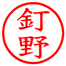 [朱肉の色]を選び、入力窓に“釘野”と入力して[生成]ボタンを押すと、印影が更新され、リンクから電子印鑑(デジタル印影)がダウンロードできます。 電子印鑑「釘野」の作り方文字表示が変なときや、文字バランスが悪いときは[字形切替]のチェックボックスでON/OFFを切り替え[生成]しなおしてください。 生成される画像は通常の印影「釘野.png」と、にじみを表現した少し太めの印影「釘野B.png」の背面透過PNG形式2種と、鮮明なPDF形式の印影「釘野.pdf」の計3種類です。 朱肉の微妙な色の違いを7色で表現しました。デフォルト(左端)は、JISが定めた朱肉の色のマンセル値(7.5R 5/14)をRGB値(217,66,54)に変換したものになっています。 「電子透かし」にチェックを入れて[生成]ボタンを押すと、タイムスタンプを電子透かしとして埋め込んだセキュアな電子印鑑が作れます。詳細は別ページの「タイムスタンプと電子透かし」でご覧ください。 釘野さんの日付印が作れます。「日付スタンプメーカー」は、社内向けの書類に利用されることの多い日付印(データ印)が無料で作れるWebアプリケーションです。中段に日付が入り、上段と下段は、ともに8文字まで文字が入ります。 ![]() 古代文字で落款印が作れます。「落款スタンプメーカー」で作品を引き立たせる落款印が作れます。
