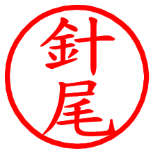 [朱肉の色]を選び、入力窓に“針尾”と入力して[生成]ボタンを押すと、印影が更新され、リンクから電子印鑑(デジタル印影)がダウンロードできます。 電子印鑑「針尾」の作り方文字表示が変なときや、文字バランスが悪いときは[字形切替]のチェックボックスでON/OFFを切り替え[生成]しなおしてください。 生成される画像は通常の印影「針尾.png」と、にじみを表現した少し太めの印影「針尾B.png」の背面透過PNG形式2種と、鮮明なPDF形式の印影「針尾.pdf」の計3種類です。 朱肉の微妙な色の違いを7色で表現しました。デフォルト(左端)は、JISが定めた朱肉の色のマンセル値(7.5R 5/14)をRGB値(217,66,54)に変換したものになっています。 「電子透かし」にチェックを入れて[生成]ボタンを押すと、タイムスタンプを電子透かしとして埋め込んだセキュアな電子印鑑が作れます。詳細は別ページの「タイムスタンプと電子透かし」でご覧ください。 針尾さんの日付印が作れます。「日付スタンプメーカー」は、社内向けの書類に利用されることの多い日付印(データ印)が無料で作れるWebアプリケーションです。中段に日付が入り、上段と下段は、ともに8文字まで文字が入ります。 ![]() 古代文字で落款印が作れます。「落款スタンプメーカー」で作品を引き立たせる落款印が作れます。