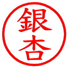 [朱肉の色]を選び、入力窓に“銀杏”と入力して[生成]ボタンを押すと、印影が更新され、リンクから電子印鑑(デジタル印影)がダウンロードできます。 電子印鑑「銀杏」の作り方文字表示が変なときや、文字バランスが悪いときは[字形切替]のチェックボックスでON/OFFを切り替え[生成]しなおしてください。 生成される画像は通常の印影「銀杏.png」と、にじみを表現した少し太めの印影「銀杏B.png」の背面透過PNG形式2種と、鮮明なPDF形式の印影「銀杏.pdf」の計3種類です。 朱肉の微妙な色の違いを7色で表現しました。デフォルト(左端)は、JISが定めた朱肉の色のマンセル値(7.5R 5/14)をRGB値(217,66,54)に変換したものになっています。 「電子透かし」にチェックを入れて[生成]ボタンを押すと、タイムスタンプを電子透かしとして埋め込んだセキュアな電子印鑑が作れます。詳細は別ページの「タイムスタンプと電子透かし」でご覧ください。 銀杏さんの日付印が作れます。「日付スタンプメーカー」は、社内向けの書類に利用されることの多い日付印(データ印)が無料で作れるWebアプリケーションです。中段に日付が入り、上段と下段は、ともに8文字まで文字が入ります。 ![]() 古代文字で落款印が作れます。「落款スタンプメーカー」で作品を引き立たせる落款印が作れます。