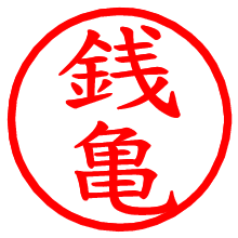 [朱肉の色]を選び、入力窓に“銭亀”と入力して[生成]ボタンを押すと、印影が更新され、リンクから電子印鑑(デジタル印影)がダウンロードできます。 電子印鑑「銭亀」の作り方文字表示が変なときや、文字バランスが悪いときは[字形切替]のチェックボックスでON/OFFを切り替え[生成]しなおしてください。 生成される画像は通常の印影「銭亀.png」と、にじみを表現した少し太めの印影「銭亀B.png」の背面透過PNG形式2種と、鮮明なPDF形式の印影「銭亀.pdf」の計3種類です。 朱肉の微妙な色の違いを7色で表現しました。デフォルト(左端)は、JISが定めた朱肉の色のマンセル値(7.5R 5/14)をRGB値(217,66,54)に変換したものになっています。 「電子透かし」にチェックを入れて[生成]ボタンを押すと、タイムスタンプを電子透かしとして埋め込んだセキュアな電子印鑑が作れます。詳細は別ページの「タイムスタンプと電子透かし」でご覧ください。 銭亀さんの日付印が作れます。「日付スタンプメーカー」は、社内向けの書類に利用されることの多い日付印(データ印)が無料で作れるWebアプリケーションです。中段に日付が入り、上段と下段は、ともに8文字まで文字が入ります。 ![]() 古代文字で落款印が作れます。「落款スタンプメーカー」で作品を引き立たせる落款印が作れます。