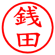 [朱肉の色]を選び、入力窓に“銭田”と入力して[生成]ボタンを押すと、印影が更新され、リンクから電子印鑑(デジタル印影)がダウンロードできます。 電子印鑑「銭田」の作り方文字表示が変なときや、文字バランスが悪いときは[字形切替]のチェックボックスでON/OFFを切り替え[生成]しなおしてください。 生成される画像は通常の印影「銭田.png」と、にじみを表現した少し太めの印影「銭田B.png」の背面透過PNG形式2種と、鮮明なPDF形式の印影「銭田.pdf」の計3種類です。 朱肉の微妙な色の違いを7色で表現しました。デフォルト(左端)は、JISが定めた朱肉の色のマンセル値(7.5R 5/14)をRGB値(217,66,54)に変換したものになっています。 「電子透かし」にチェックを入れて[生成]ボタンを押すと、タイムスタンプを電子透かしとして埋め込んだセキュアな電子印鑑が作れます。詳細は別ページの「タイムスタンプと電子透かし」でご覧ください。 銭田さんの日付印が作れます。「日付スタンプメーカー」は、社内向けの書類に利用されることの多い日付印(データ印)が無料で作れるWebアプリケーションです。中段に日付が入り、上段と下段は、ともに8文字まで文字が入ります。 ![]() 古代文字で落款印が作れます。「落款スタンプメーカー」で作品を引き立たせる落款印が作れます。