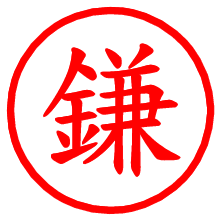 [朱肉の色]を選び、入力窓に“鎌”と入力して[生成]ボタンを押すと、印影が更新され、リンクから電子印鑑(デジタル印影)がダウンロードできます。 電子印鑑「鎌」の作り方文字表示が変なときや、文字バランスが悪いときは[字形切替]のチェックボックスでON/OFFを切り替え[生成]しなおしてください。 生成される画像は通常の印影「鎌.png」と、にじみを表現した少し太めの印影「鎌B.png」の背面透過PNG形式2種と、鮮明なPDF形式の印影「鎌.pdf」の計3種類です。 朱肉の微妙な色の違いを7色で表現しました。デフォルト(左端)は、JISが定めた朱肉の色のマンセル値(7.5R 5/14)をRGB値(217,66,54)に変換したものになっています。 「電子透かし」にチェックを入れて[生成]ボタンを押すと、タイムスタンプを電子透かしとして埋め込んだセキュアな電子印鑑が作れます。詳細は別ページの「タイムスタンプと電子透かし」でご覧ください。 鎌さんの日付印が作れます。「日付スタンプメーカー」は、社内向けの書類に利用されることの多い日付印(データ印)が無料で作れるWebアプリケーションです。中段に日付が入り、上段と下段は、ともに8文字まで文字が入ります。 ![]() 古代文字で落款印が作れます。「落款スタンプメーカー」で作品を引き立たせる落款印が作れます。