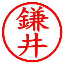 [朱肉の色]を選び、入力窓に“鎌井”と入力して[生成]ボタンを押すと、印影が更新され、リンクから電子印鑑(デジタル印影)がダウンロードできます。 電子印鑑「鎌井」の作り方文字表示が変なときや、文字バランスが悪いときは[字形切替]のチェックボックスでON/OFFを切り替え[生成]しなおしてください。 生成される画像は通常の印影「鎌井.png」と、にじみを表現した少し太めの印影「鎌井B.png」の背面透過PNG形式2種と、鮮明なPDF形式の印影「鎌井.pdf」の計3種類です。 朱肉の微妙な色の違いを7色で表現しました。デフォルト(左端)は、JISが定めた朱肉の色のマンセル値(7.5R 5/14)をRGB値(217,66,54)に変換したものになっています。 「電子透かし」にチェックを入れて[生成]ボタンを押すと、タイムスタンプを電子透かしとして埋め込んだセキュアな電子印鑑が作れます。詳細は別ページの「タイムスタンプと電子透かし」でご覧ください。 鎌井さんの日付印が作れます。「日付スタンプメーカー」は、社内向けの書類に利用されることの多い日付印(データ印)が無料で作れるWebアプリケーションです。中段に日付が入り、上段と下段は、ともに8文字まで文字が入ります。 ![]() 古代文字で落款印が作れます。「落款スタンプメーカー」で作品を引き立たせる落款印が作れます。