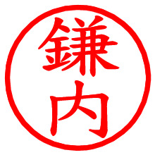 [朱肉の色]を選び、入力窓に“鎌内”と入力して[生成]ボタンを押すと、印影が更新され、リンクから電子印鑑(デジタル印影)がダウンロードできます。 電子印鑑「鎌内」の作り方文字表示が変なときや、文字バランスが悪いときは[字形切替]のチェックボックスでON/OFFを切り替え[生成]しなおしてください。 生成される画像は通常の印影「鎌内.png」と、にじみを表現した少し太めの印影「鎌内B.png」の背面透過PNG形式2種と、鮮明なPDF形式の印影「鎌内.pdf」の計3種類です。 朱肉の微妙な色の違いを7色で表現しました。デフォルト(左端)は、JISが定めた朱肉の色のマンセル値(7.5R 5/14)をRGB値(217,66,54)に変換したものになっています。 「電子透かし」にチェックを入れて[生成]ボタンを押すと、タイムスタンプを電子透かしとして埋め込んだセキュアな電子印鑑が作れます。詳細は別ページの「タイムスタンプと電子透かし」でご覧ください。 鎌内さんの日付印が作れます。「日付スタンプメーカー」は、社内向けの書類に利用されることの多い日付印(データ印)が無料で作れるWebアプリケーションです。中段に日付が入り、上段と下段は、ともに8文字まで文字が入ります。 ![]() 古代文字で落款印が作れます。「落款スタンプメーカー」で作品を引き立たせる落款印が作れます。