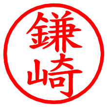 [朱肉の色]を選び、入力窓に“鎌崎”と入力して[生成]ボタンを押すと、印影が更新され、リンクから電子印鑑(デジタル印影)がダウンロードできます。 電子印鑑「鎌崎」の作り方文字表示が変なときや、文字バランスが悪いときは[字形切替]のチェックボックスでON/OFFを切り替え[生成]しなおしてください。 生成される画像は通常の印影「鎌崎.png」と、にじみを表現した少し太めの印影「鎌崎B.png」の背面透過PNG形式2種と、鮮明なPDF形式の印影「鎌崎.pdf」の計3種類です。 朱肉の微妙な色の違いを7色で表現しました。デフォルト(左端)は、JISが定めた朱肉の色のマンセル値(7.5R 5/14)をRGB値(217,66,54)に変換したものになっています。 「電子透かし」にチェックを入れて[生成]ボタンを押すと、タイムスタンプを電子透かしとして埋め込んだセキュアな電子印鑑が作れます。詳細は別ページの「タイムスタンプと電子透かし」でご覧ください。 鎌崎さんの日付印が作れます。「日付スタンプメーカー」は、社内向けの書類に利用されることの多い日付印(データ印)が無料で作れるWebアプリケーションです。中段に日付が入り、上段と下段は、ともに8文字まで文字が入ります。 ![]() 古代文字で落款印が作れます。「落款スタンプメーカー」で作品を引き立たせる落款印が作れます。