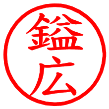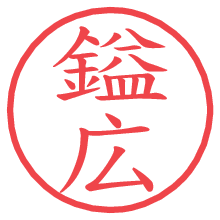 [朱肉の色]を選び、入力窓に“鎰広”と入力して[生成]ボタンを押すと、印影が更新され、リンクから電子印鑑(デジタル印影)がダウンロードできます。 電子印鑑「鎰広」の作り方文字表示が変なときや、文字バランスが悪いときは[字形切替]のチェックボックスでON/OFFを切り替え[生成]しなおしてください。 生成される画像は通常の印影「鎰広.png」と、にじみを表現した少し太めの印影「鎰広B.png」の背面透過PNG形式2種と、鮮明なPDF形式の印影「鎰広.pdf」の計3種類です。 朱肉の微妙な色の違いを7色で表現しました。デフォルト(左端)は、JISが定めた朱肉の色のマンセル値(7.5R 5/14)をRGB値(217,66,54)に変換したものになっています。 「電子透かし」にチェックを入れて[生成]ボタンを押すと、タイムスタンプを電子透かしとして埋め込んだセキュアな電子印鑑が作れます。詳細は別ページの「タイムスタンプと電子透かし」でご覧ください。 鎰広さんの日付印が作れます。「日付スタンプメーカー」は、社内向けの書類に利用されることの多い日付印(データ印)が無料で作れるWebアプリケーションです。中段に日付が入り、上段と下段は、ともに8文字まで文字が入ります。 ![]() 古代文字で落款印が作れます。「落款スタンプメーカー」で作品を引き立たせる落款印が作れます。