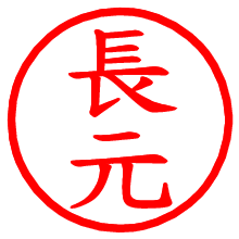 [朱肉の色]を選び、入力窓に“長元”と入力して[生成]ボタンを押すと、印影が更新され、リンクから電子印鑑(デジタル印影)がダウンロードできます。 電子印鑑「長元」の作り方文字表示が変なときや、文字バランスが悪いときは[字形切替]のチェックボックスでON/OFFを切り替え[生成]しなおしてください。 生成される画像は通常の印影「長元.png」と、にじみを表現した少し太めの印影「長元B.png」の背面透過PNG形式2種と、鮮明なPDF形式の印影「長元.pdf」の計3種類です。 朱肉の微妙な色の違いを7色で表現しました。デフォルト(左端)は、JISが定めた朱肉の色のマンセル値(7.5R 5/14)をRGB値(217,66,54)に変換したものになっています。 「電子透かし」にチェックを入れて[生成]ボタンを押すと、タイムスタンプを電子透かしとして埋め込んだセキュアな電子印鑑が作れます。詳細は別ページの「タイムスタンプと電子透かし」でご覧ください。 長元さんの日付印が作れます。「日付スタンプメーカー」は、社内向けの書類に利用されることの多い日付印(データ印)が無料で作れるWebアプリケーションです。中段に日付が入り、上段と下段は、ともに8文字まで文字が入ります。 ![]() 古代文字で落款印が作れます。「落款スタンプメーカー」で作品を引き立たせる落款印が作れます。