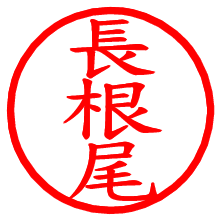 [朱肉の色]を選び、入力窓に“長根尾”と入力して[生成]ボタンを押すと、印影が更新され、リンクから電子印鑑(デジタル印影)がダウンロードできます。 電子印鑑「長根尾」の作り方文字表示が変なときや、文字バランスが悪いときは[字形切替]のチェックボックスでON/OFFを切り替え[生成]しなおしてください。 生成される画像は通常の印影「長根尾.png」と、にじみを表現した少し太めの印影「長根尾B.png」の背面透過PNG形式2種と、鮮明なPDF形式の印影「長根尾.pdf」の計3種類です。 朱肉の微妙な色の違いを7色で表現しました。デフォルト(左端)は、JISが定めた朱肉の色のマンセル値(7.5R 5/14)をRGB値(217,66,54)に変換したものになっています。 「電子透かし」にチェックを入れて[生成]ボタンを押すと、タイムスタンプを透かしとして埋め込んだセキュアな電子印鑑が作れます。詳細は別ページの「電子透かしとタイムスタンプ」でご覧ください。 長根尾さんの日付印が作れます。「日付スタンプメーカー」は、社内向けの書類に利用されることの多い日付印(データ印)が無料で作れるWebアプリケーションです。中段に日付が入り、上段と下段は、ともに8文字まで文字が入ります。 ![]() 古代文字で落款印が作れます。「落款スタンプメーカー」で作品を引き立たせる落款印が作れます。