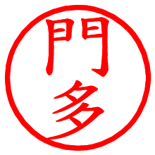 [朱肉の色]を選び、入力窓に“門多”と入力して[生成]ボタンを押すと、印影が更新され、リンクから電子印鑑(デジタル印影)がダウンロードできます。 電子印鑑「門多」の作り方文字表示が変なときや、文字バランスが悪いときは[字形切替]のチェックボックスでON/OFFを切り替え[生成]しなおしてください。 生成される画像は通常の印影「門多.png」と、にじみを表現した少し太めの印影「門多B.png」の背面透過PNG形式2種と、鮮明なPDF形式の印影「門多.pdf」の計3種類です。 朱肉の微妙な色の違いを7色で表現しました。デフォルト(左端)は、JISが定めた朱肉の色のマンセル値(7.5R 5/14)をRGB値(217,66,54)に変換したものになっています。 「電子透かし」にチェックを入れて[生成]ボタンを押すと、タイムスタンプを電子透かしとして埋め込んだセキュアな電子印鑑が作れます。詳細は別ページの「タイムスタンプと電子透かし」でご覧ください。 門多さんの日付印が作れます。「日付スタンプメーカー」は、社内向けの書類に利用されることの多い日付印(データ印)が無料で作れるWebアプリケーションです。中段に日付が入り、上段と下段は、ともに8文字まで文字が入ります。 ![]() 古代文字で落款印が作れます。「落款スタンプメーカー」で作品を引き立たせる落款印が作れます。