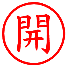[朱肉の色]を選び、入力窓に“開”と入力して[生成]ボタンを押すと、印影が更新され、リンクから電子印鑑(デジタル印影)がダウンロードできます。 電子印鑑「開」の作り方文字表示が変なときや、文字バランスが悪いときは[字形切替]のチェックボックスでON/OFFを切り替え[生成]しなおしてください。 生成される画像は通常の印影「開.png」と、にじみを表現した少し太めの印影「開B.png」の背面透過PNG形式2種と、鮮明なPDF形式の印影「開.pdf」の計3種類です。 朱肉の微妙な色の違いを7色で表現しました。デフォルト(左端)は、JISが定めた朱肉の色のマンセル値(7.5R 5/14)をRGB値(217,66,54)に変換したものになっています。 「電子透かし」にチェックを入れて[生成]ボタンを押すと、タイムスタンプを電子透かしとして埋め込んだセキュアな電子印鑑が作れます。詳細は別ページの「タイムスタンプと電子透かし」でご覧ください。 開さんの日付印が作れます。「日付スタンプメーカー」は、社内向けの書類に利用されることの多い日付印(データ印)が無料で作れるWebアプリケーションです。中段に日付が入り、上段と下段は、ともに8文字まで文字が入ります。 ![]() 古代文字で落款印が作れます。「落款スタンプメーカー」で作品を引き立たせる落款印が作れます。