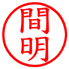 [朱肉の色]を選び、入力窓に“間明”と入力して[生成]ボタンを押すと、印影が更新され、リンクから電子印鑑(デジタル印影)がダウンロードできます。 電子印鑑「間明」の作り方文字表示が変なときや、文字バランスが悪いときは[字形切替]のチェックボックスでON/OFFを切り替え[生成]しなおしてください。 生成される画像は通常の印影「間明.png」と、にじみを表現した少し太めの印影「間明B.png」の背面透過PNG形式2種と、鮮明なPDF形式の印影「間明.pdf」の計3種類です。 朱肉の微妙な色の違いを7色で表現しました。デフォルト(左端)は、JISが定めた朱肉の色のマンセル値(7.5R 5/14)をRGB値(217,66,54)に変換したものになっています。 「電子透かし」にチェックを入れて[生成]ボタンを押すと、タイムスタンプを電子透かしとして埋め込んだセキュアな電子印鑑が作れます。詳細は別ページの「タイムスタンプと電子透かし」でご覧ください。 間明さんの日付印が作れます。「日付スタンプメーカー」は、社内向けの書類に利用されることの多い日付印(データ印)が無料で作れるWebアプリケーションです。中段に日付が入り、上段と下段は、ともに8文字まで文字が入ります。 ![]() 古代文字で落款印が作れます。「落款スタンプメーカー」で作品を引き立たせる落款印が作れます。