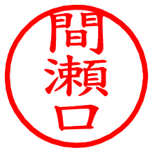 [朱肉の色]を選び、入力窓に“間瀬口”と入力して[生成]ボタンを押すと、印影が更新され、リンクから電子印鑑(デジタル印影)がダウンロードできます。 電子印鑑「間瀬口」の作り方文字表示が変なときや、文字バランスが悪いときは[字形切替]のチェックボックスでON/OFFを切り替え[生成]しなおしてください。 生成される画像は通常の印影「間瀬口.png」と、にじみを表現した少し太めの印影「間瀬口B.png」の背面透過PNG形式2種と、鮮明なPDF形式の印影「間瀬口.pdf」の計3種類です。 朱肉の微妙な色の違いを7色で表現しました。デフォルト(左端)は、JISが定めた朱肉の色のマンセル値(7.5R 5/14)をRGB値(217,66,54)に変換したものになっています。 「電子透かし」にチェックを入れて[生成]ボタンを押すと、タイムスタンプを電子透かしとして埋め込んだセキュアな電子印鑑が作れます。詳細は別ページの「タイムスタンプと電子透かし」でご覧ください。 間瀬口さんの日付印が作れます。「日付スタンプメーカー」は、社内向けの書類に利用されることの多い日付印(データ印)が無料で作れるWebアプリケーションです。中段に日付が入り、上段と下段は、ともに8文字まで文字が入ります。 ![]() 古代文字で落款印が作れます。「落款スタンプメーカー」で作品を引き立たせる落款印が作れます。