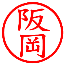 [朱肉の色]を選び、入力窓に“阪岡”と入力して[生成]ボタンを押すと、印影が更新され、リンクから電子印鑑(デジタル印影)がダウンロードできます。 電子印鑑「阪岡」の作り方文字表示が変なときや、文字バランスが悪いときは[字形切替]のチェックボックスでON/OFFを切り替え[生成]しなおしてください。 生成される画像は通常の印影「阪岡.png」と、にじみを表現した少し太めの印影「阪岡B.png」の背面透過PNG形式2種と、鮮明なPDF形式の印影「阪岡.pdf」の計3種類です。 朱肉の微妙な色の違いを7色で表現しました。デフォルト(左端)は、JISが定めた朱肉の色のマンセル値(7.5R 5/14)をRGB値(217,66,54)に変換したものになっています。 「電子透かし」にチェックを入れて[生成]ボタンを押すと、タイムスタンプを電子透かしとして埋め込んだセキュアな電子印鑑が作れます。詳細は別ページの「タイムスタンプと電子透かし」でご覧ください。 阪岡さんの日付印が作れます。「日付スタンプメーカー」は、社内向けの書類に利用されることの多い日付印(データ印)が無料で作れるWebアプリケーションです。中段に日付が入り、上段と下段は、ともに8文字まで文字が入ります。 ![]() 古代文字で落款印が作れます。「落款スタンプメーカー」で作品を引き立たせる落款印が作れます。