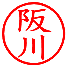[朱肉の色]を選び、入力窓に“阪川”と入力して[生成]ボタンを押すと、印影が更新され、リンクから電子印鑑(デジタル印影)がダウンロードできます。 電子印鑑「阪川」の作り方文字表示が変なときや、文字バランスが悪いときは[字形切替]のチェックボックスでON/OFFを切り替え[生成]しなおしてください。 生成される画像は通常の印影「阪川.png」と、にじみを表現した少し太めの印影「阪川B.png」の背面透過PNG形式2種と、鮮明なPDF形式の印影「阪川.pdf」の計3種類です。 朱肉の微妙な色の違いを7色で表現しました。デフォルト(左端)は、JISが定めた朱肉の色のマンセル値(7.5R 5/14)をRGB値(217,66,54)に変換したものになっています。 「電子透かし」にチェックを入れて[生成]ボタンを押すと、タイムスタンプを透かしとして埋め込んだセキュアな電子印鑑が作れます。詳細は別ページの「電子透かしとタイムスタンプ」でご覧ください。 阪川さんの日付印が作れます。「日付スタンプメーカー」は、社内向けの書類に利用されることの多い日付印(データ印)が無料で作れるWebアプリケーションです。中段に日付が入り、上段と下段は、ともに8文字まで文字が入ります。 ![]() 古代文字で落款印が作れます。「落款スタンプメーカー」で作品を引き立たせる落款印が作れます。