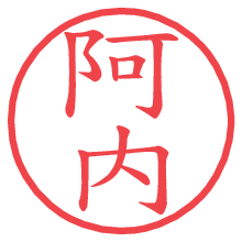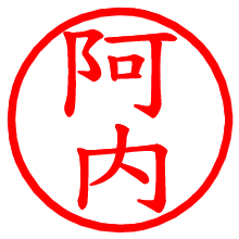 [朱肉の色]を選び、入力窓に“阿内”と入力して[生成]ボタンを押すと、印影が更新され、リンクから電子印鑑(デジタル印影)がダウンロードできます。 電子印鑑「阿内」の作り方文字表示が変なときや、文字バランスが悪いときは[字形切替]のチェックボックスでON/OFFを切り替え[生成]しなおしてください。 生成される画像は通常の印影「阿内.png」と、にじみを表現した少し太めの印影「阿内B.png」の背面透過PNG形式2種と、鮮明なPDF形式の印影「阿内.pdf」の計3種類です。 朱肉の微妙な色の違いを7色で表現しました。デフォルト(左端)は、JISが定めた朱肉の色のマンセル値(7.5R 5/14)をRGB値(217,66,54)に変換したものになっています。 「電子透かし」にチェックを入れて[生成]ボタンを押すと、タイムスタンプを電子透かしとして埋め込んだセキュアな電子印鑑が作れます。詳細は別ページの「タイムスタンプと電子透かし」でご覧ください。 阿内さんの日付印が作れます。「日付スタンプメーカー」は、社内向けの書類に利用されることの多い日付印(データ印)が無料で作れるWebアプリケーションです。中段に日付が入り、上段と下段は、ともに8文字まで文字が入ります。 ![]() 古代文字で落款印が作れます。「落款スタンプメーカー」で作品を引き立たせる落款印が作れます。